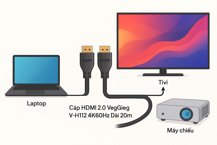 Cáp HDMI 2.0 VegGieg V-H107 dễ dàng kết nối các thiết bị nguồn phát và hiển thị như:
