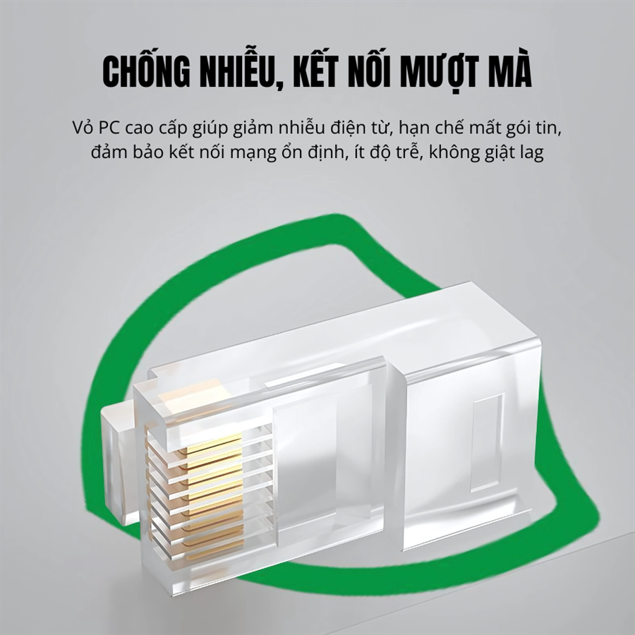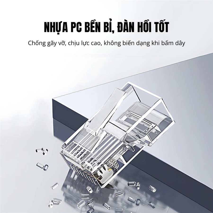 Gigabit 10/100/1000Mbps, sản phẩm đảm bảo tín hiệu truyền dẫn ổn định, giảm thiểu suy hao và dễ dàng kiểm tra lỗi khi bấm dây.