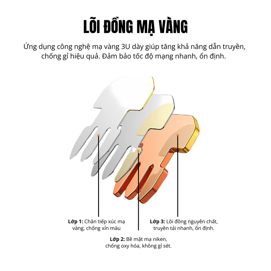 - Chân tiếp xúc: Đồng nguyên chất, mạ chống oxy hóa, đảm bảo tín hiệu ổn định